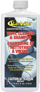 Quickly removes dirt, grease and stains. Won\'t streak, stain or discolor vinyl. Gets out deeply embedded grime. For exterior and interior vinyl. Use on vinylized canvas, chairs, cushions, foul weather gear. Concentrated. Biodegradable.